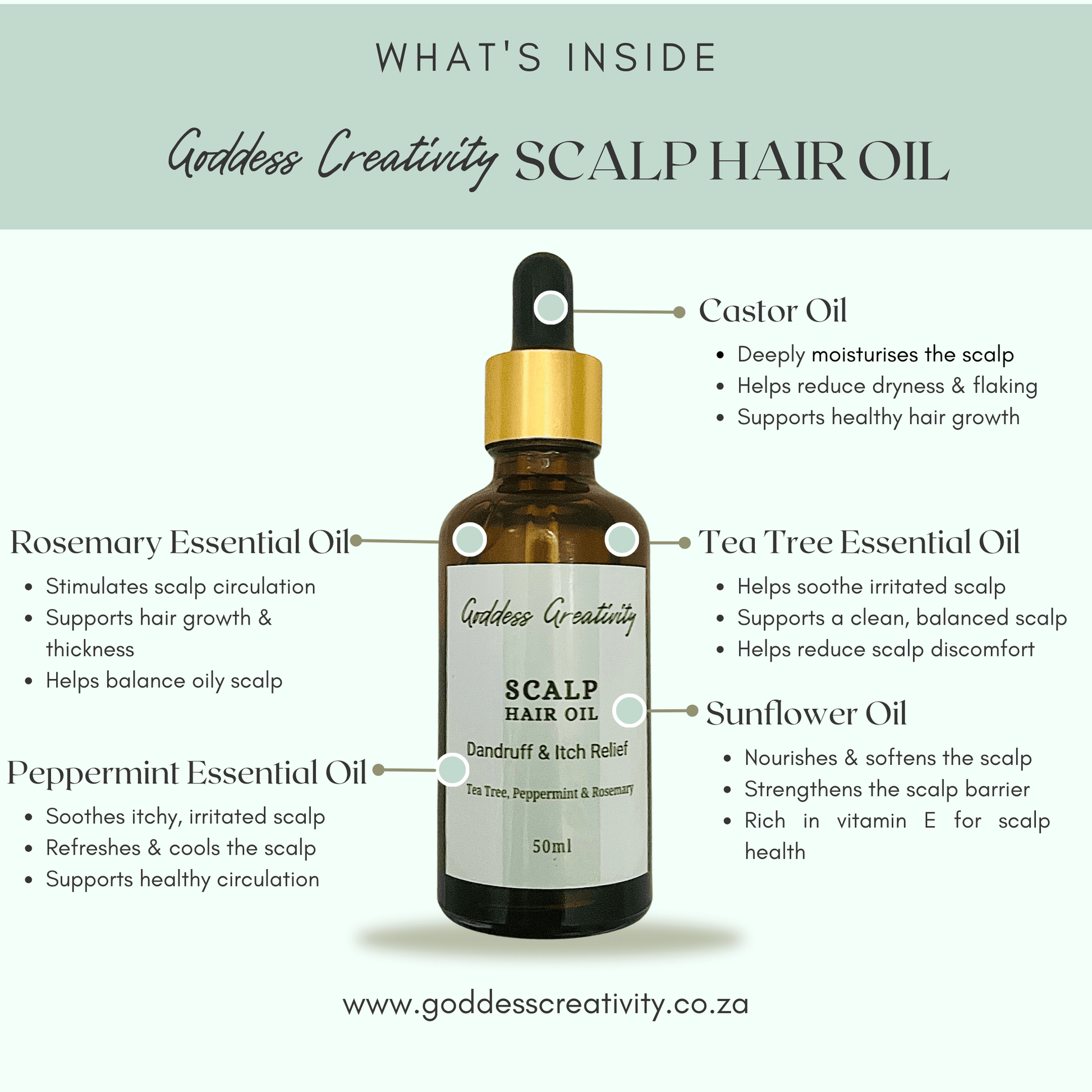 Scalp Hair Oil with Rosemary, Peppermint and Tea Tree Essential Oils